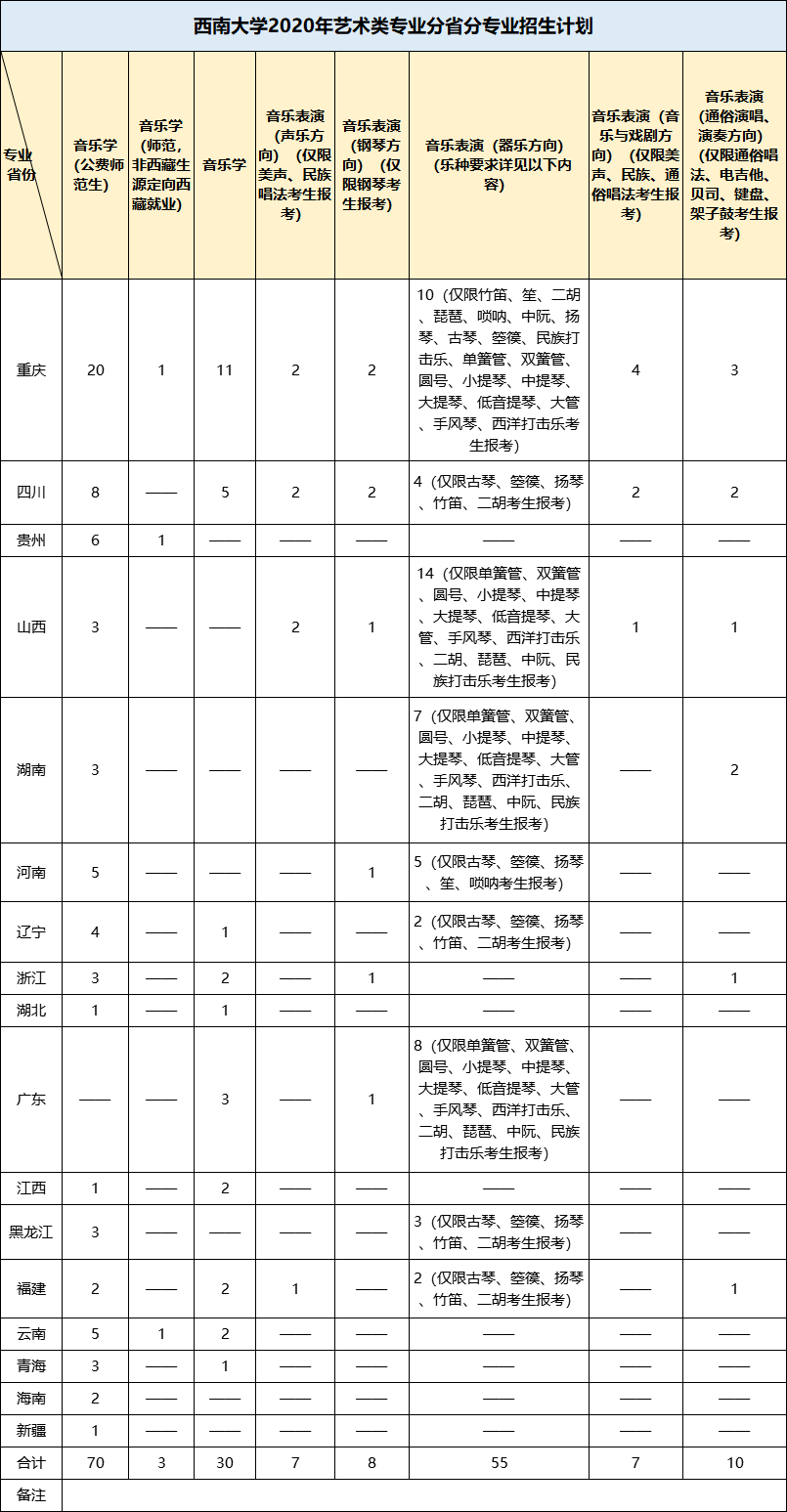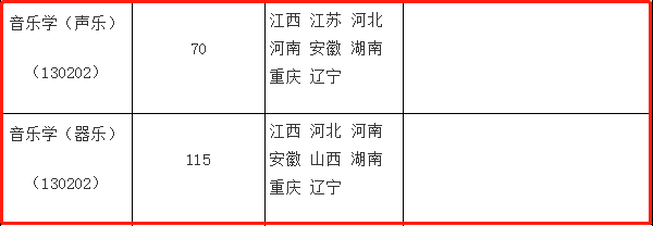 音乐学(音乐教育)2020年招生计划暂定20人,分省招生计划见下表(暂定):