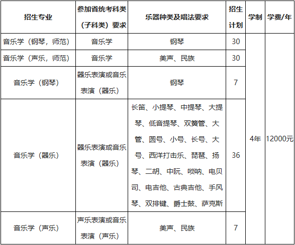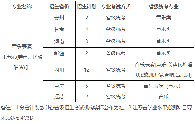 2020年音乐学、音乐表演专业不再组织专业校考,使用各省统考成绩。目前调整后的招生简章暂未公布。