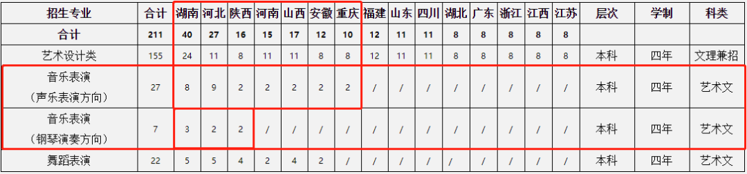 音乐表演2020年招生计划暂定36人,分省招生计划见下表(暂定):