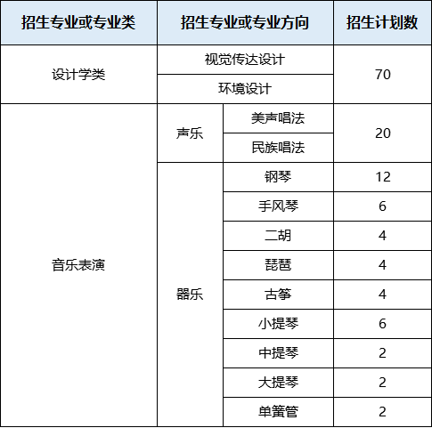 2020年计划招收音乐表演专业本科生50人,招生计划如下: