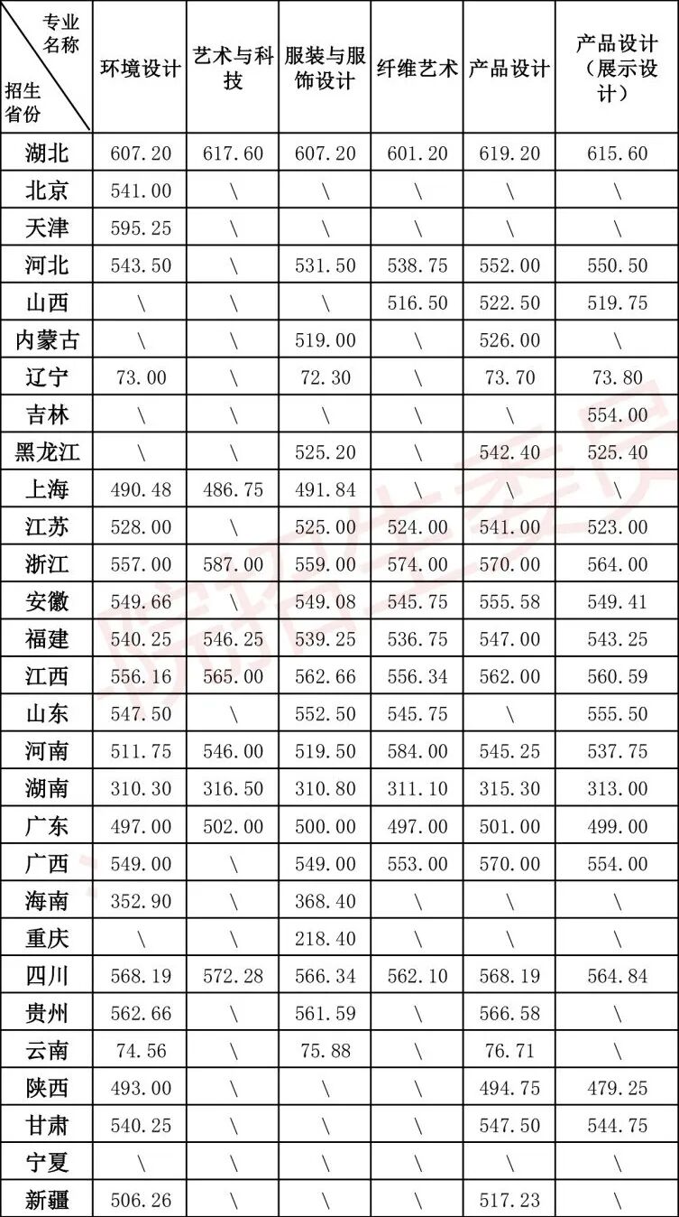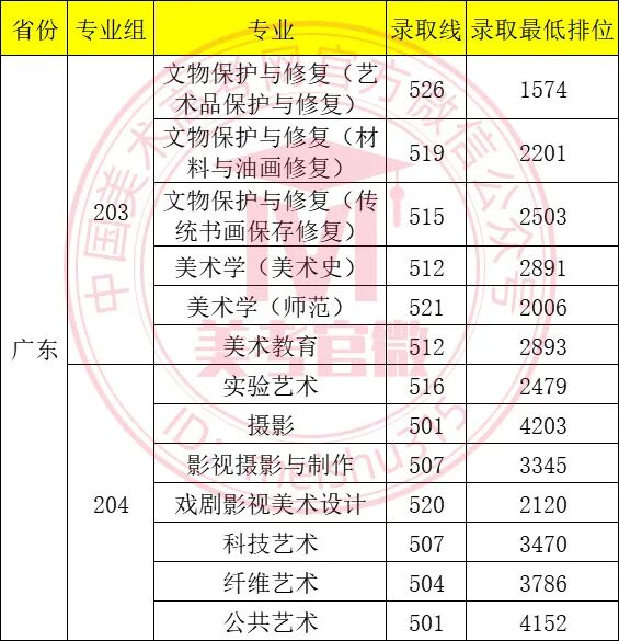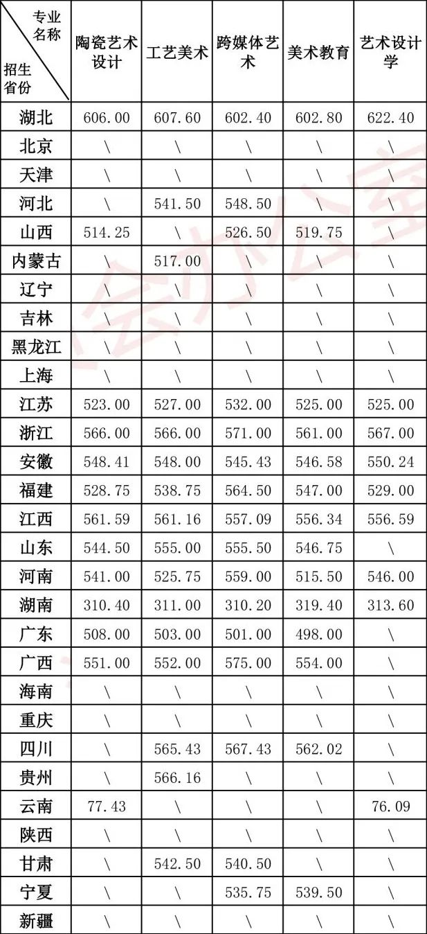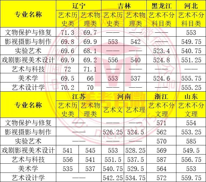 其余美术类专业均采用各省美术统考成绩,对美术统考、文化成绩均无特别要求,按照各省规定的平行志愿综合分进行录取。