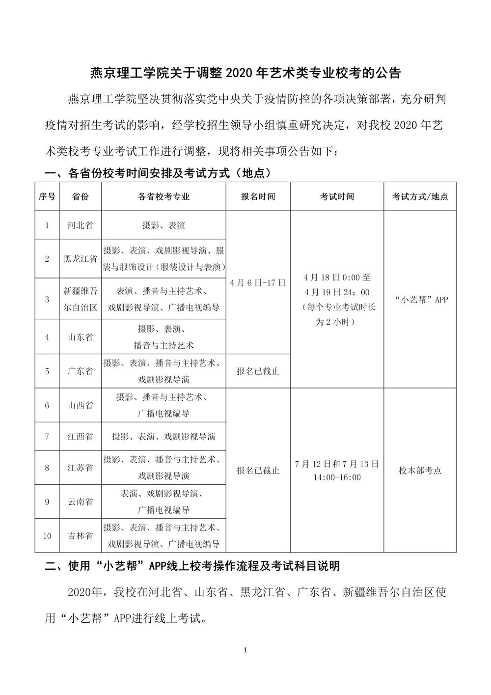 燕京理工学院关于调整2020年艺术类专业校考的公告