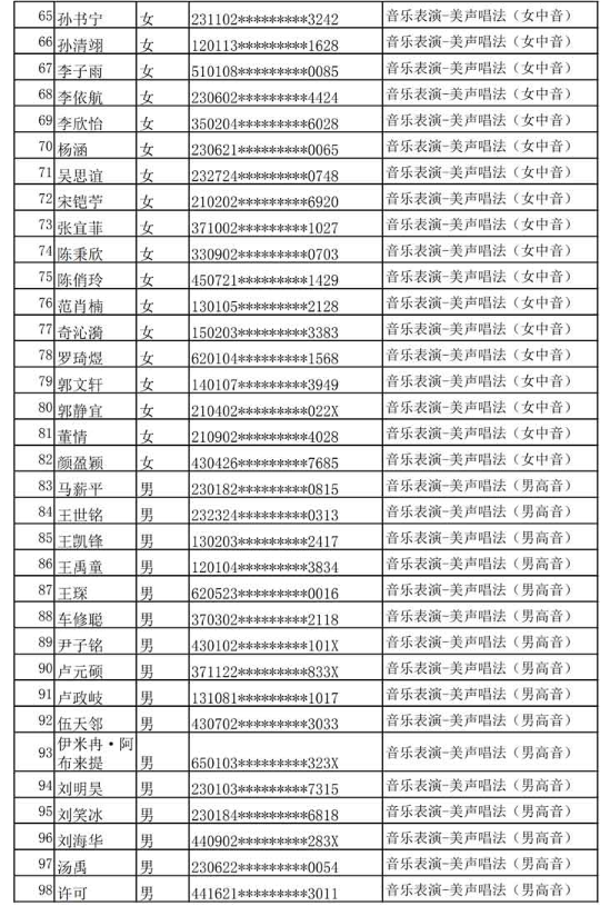 音乐表演专业的声乐歌剧和民族声乐方向对考生身高有具体要求,详见《招生简章》。