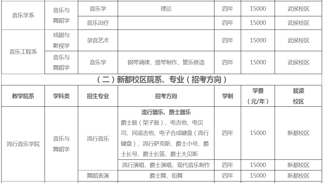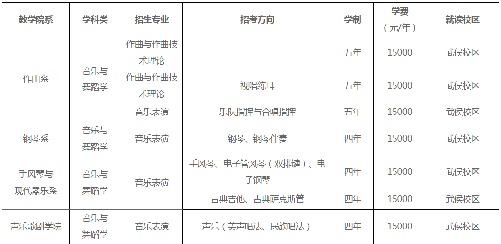 招生部门:四川音乐学院招生处
